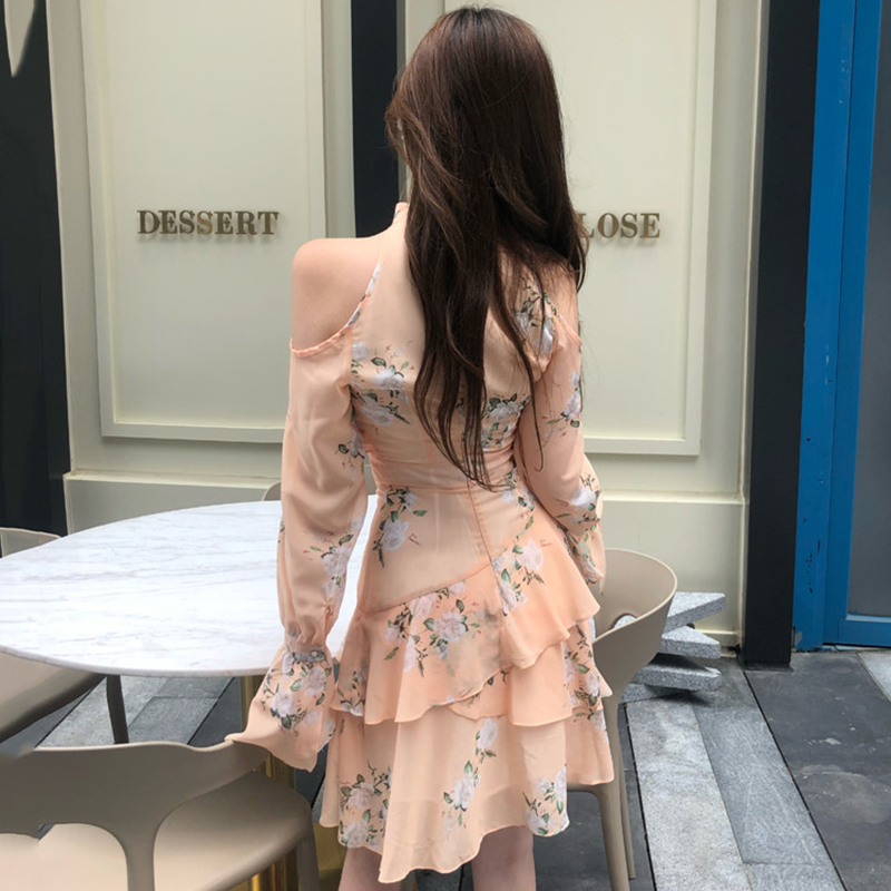女秋裝2018新款 超仙連衣裙 初戀碎花裙復古長袖露肩荷葉連衣裙子