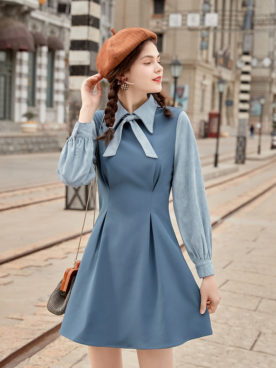 MG小象學生收腰連衣裙女中長款氣質初戀裙2018新款冬季學院風裙子