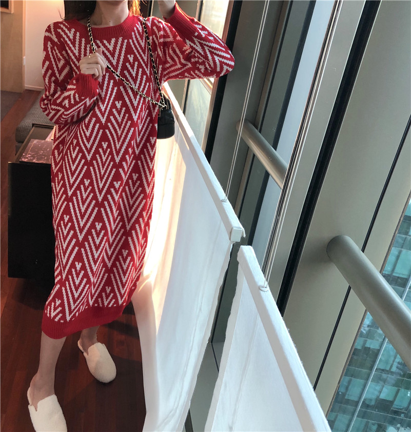 / 韓版新款chic寬松長款套頭小香風網紅毛衣女秋冬時尚中長款毛衣裙