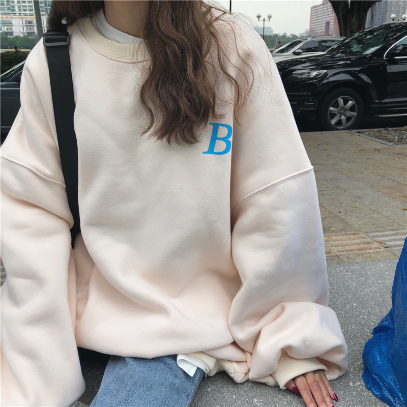 / 秋冬女裝韓版中長款原宿風寬松字母加絨加厚套頭超火衛衣上衣外套