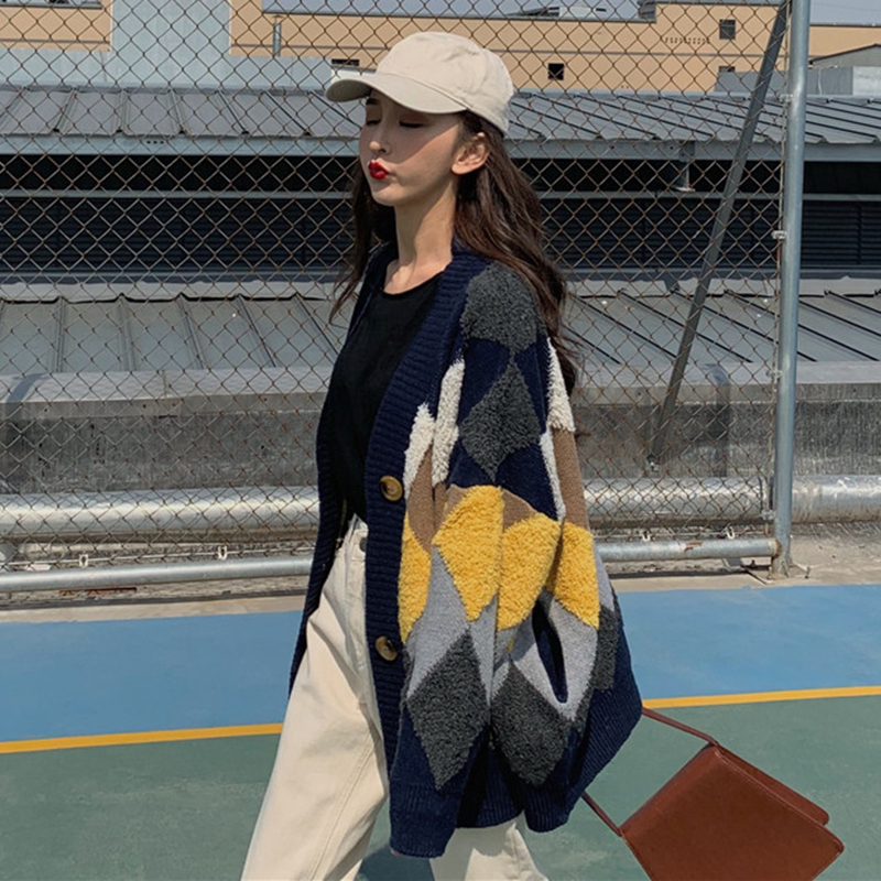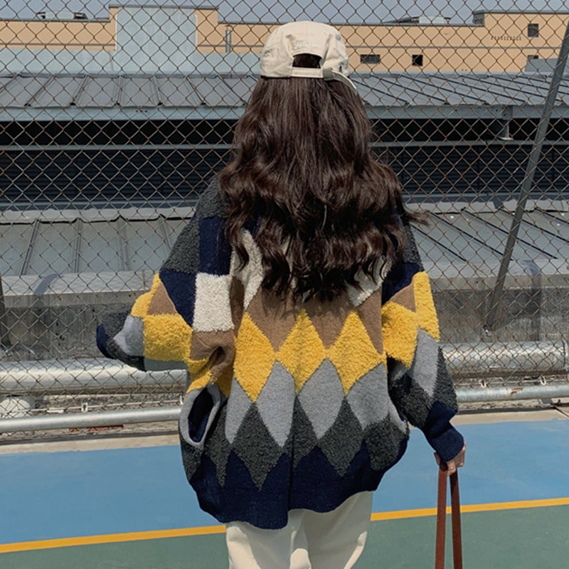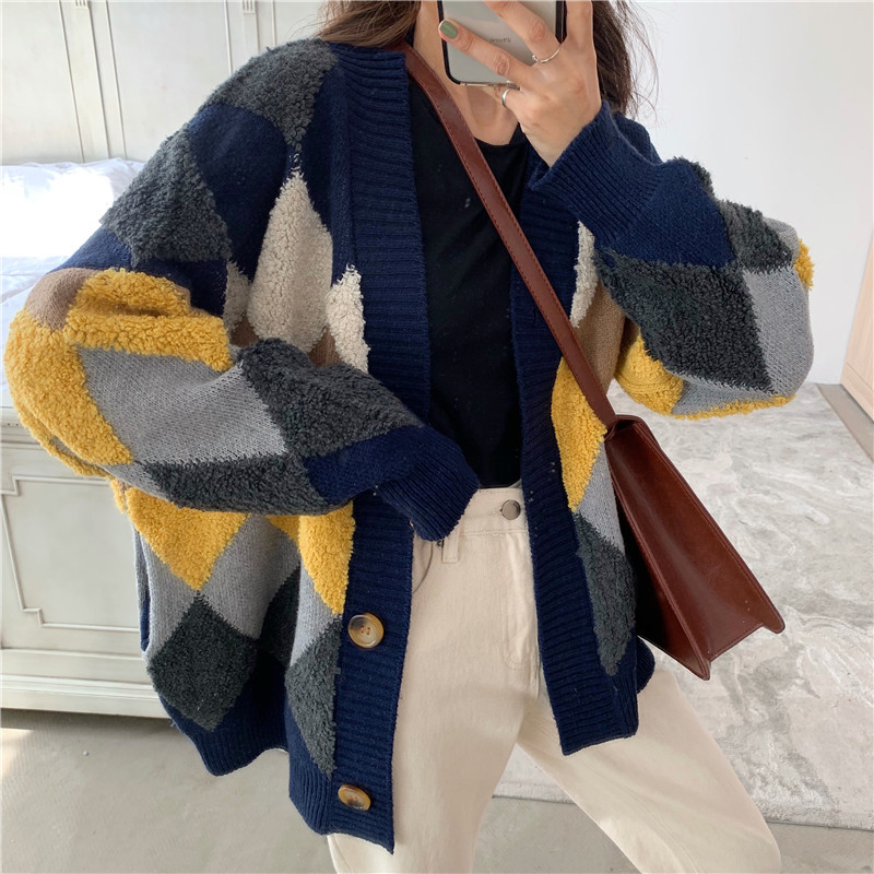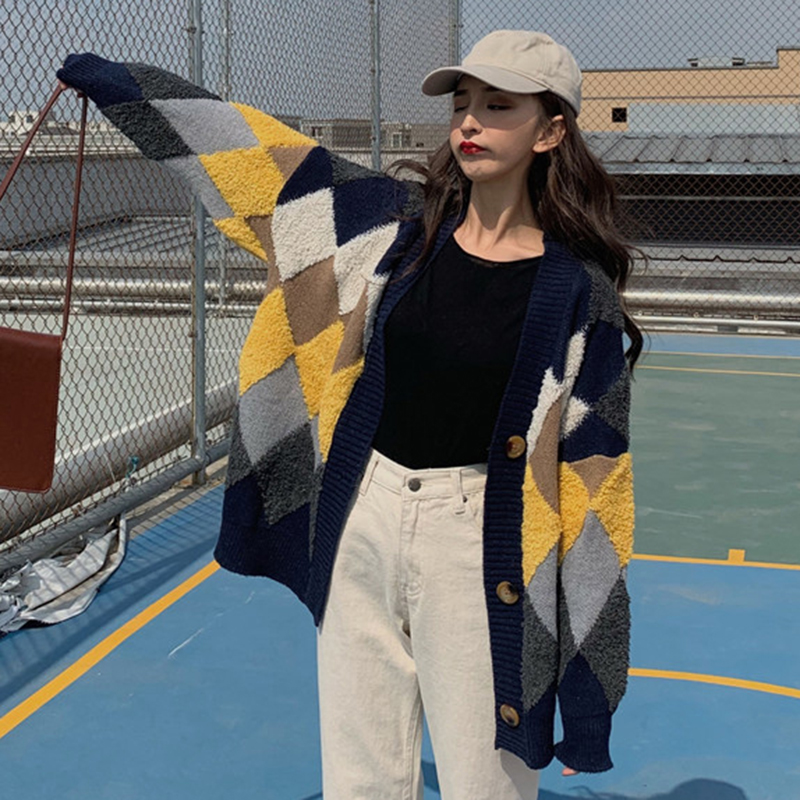秋冬女裝2018新款學生慵懶寬松保暖針織外套時尚撞色上衣長袖毛衣