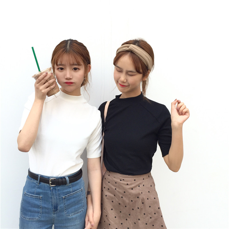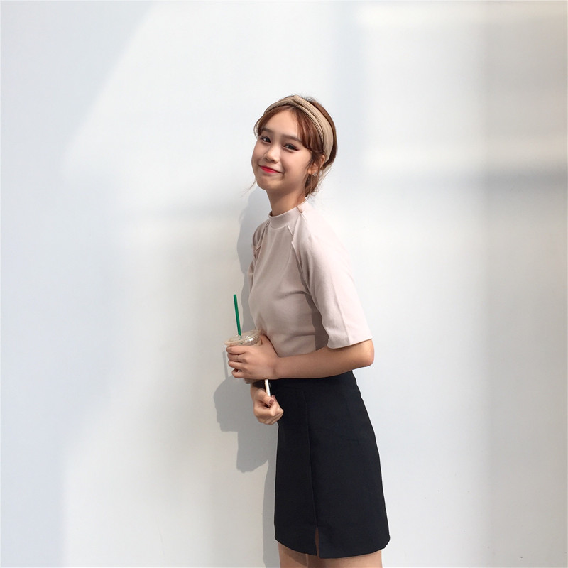 / 春夏女裝韓版純色短袖T恤簡約基礎款短款修身上衣中袖學生打底衫