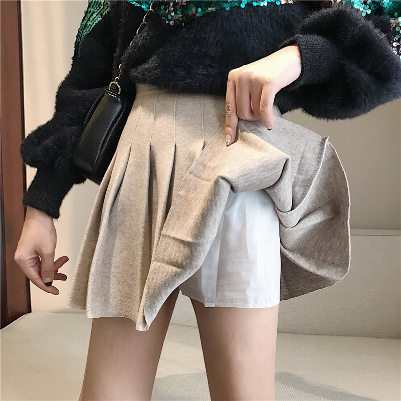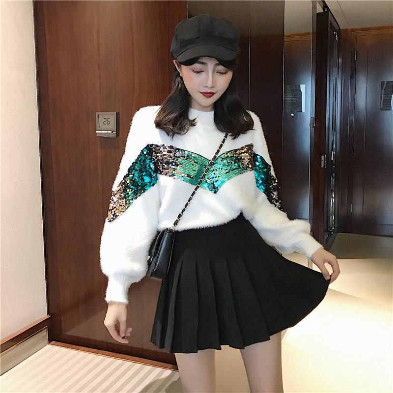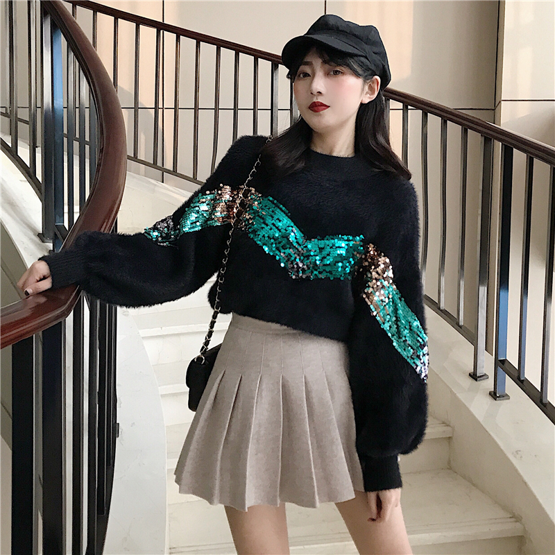 秋冬時尚套裝珠片繡寬松套頭加厚毛衣百褶毛呢半身裙短裙褲潮