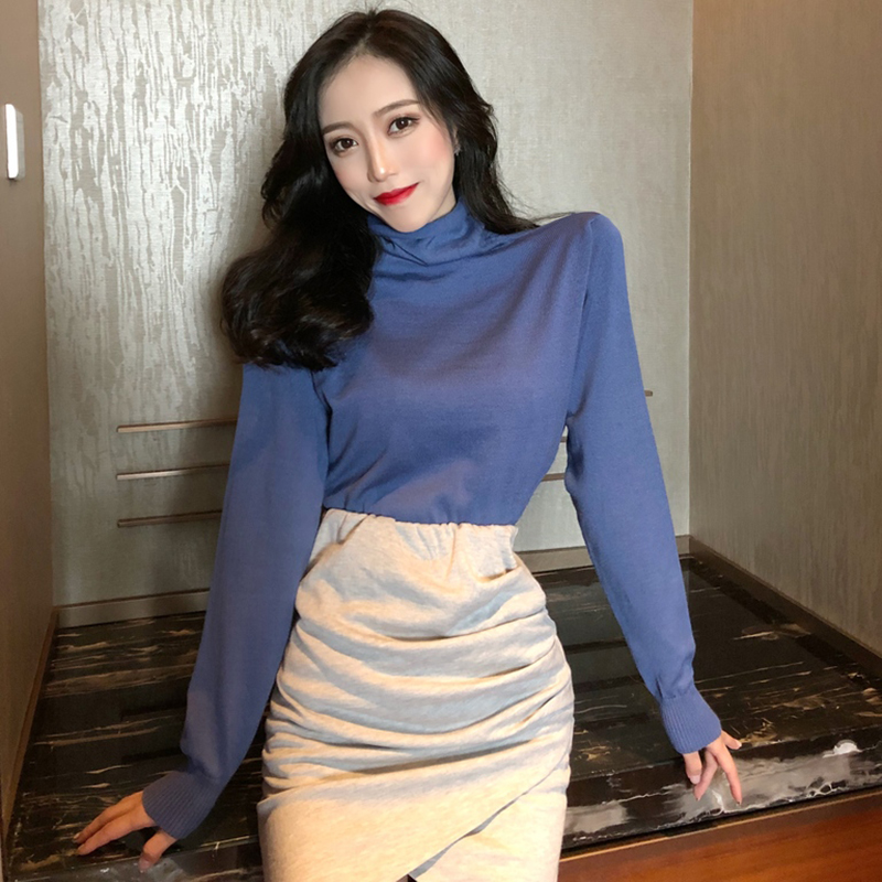chic高領打底薄毛衣女秋冬裝2018新款韓版氣質黑色顯瘦長袖針織衫