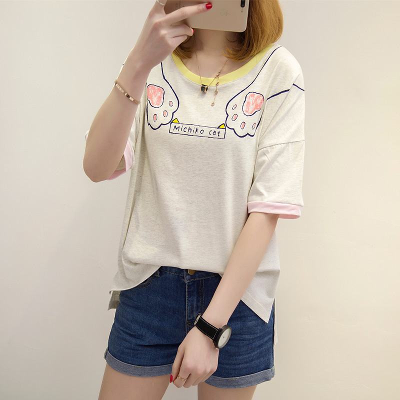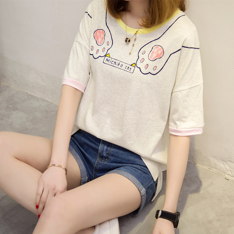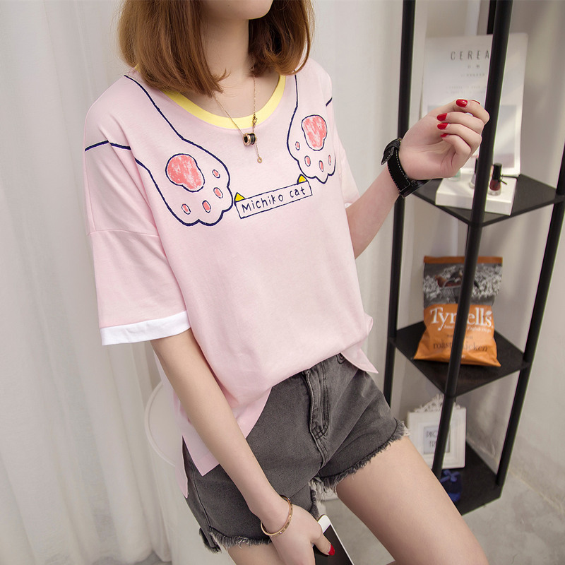 夏裝新款女裝白色t恤女上衣寬松短袖韓版學生打底可愛體恤衫