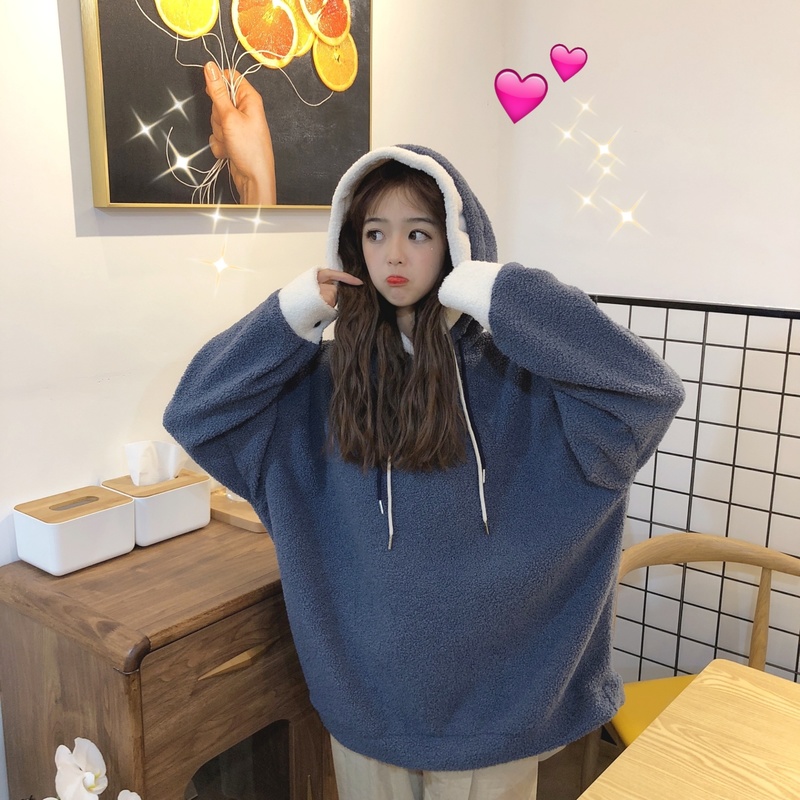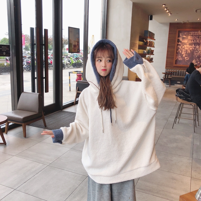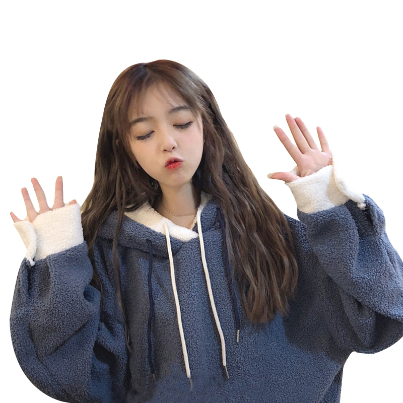 / 秋冬女裝韓版原宿風寬松慵懶風拼色加厚連帽套頭超火衛衣上衣外套