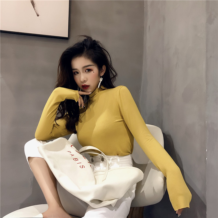/ 韓版2018早秋新款時尚半高領七色貼身顯瘦百搭純色打底衫T恤女裝