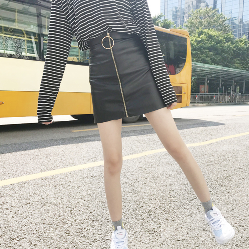 / 2018秋新款韓版時尚pu皮裙子拉鏈高腰A字半身裙女裝黑色包臀短裙