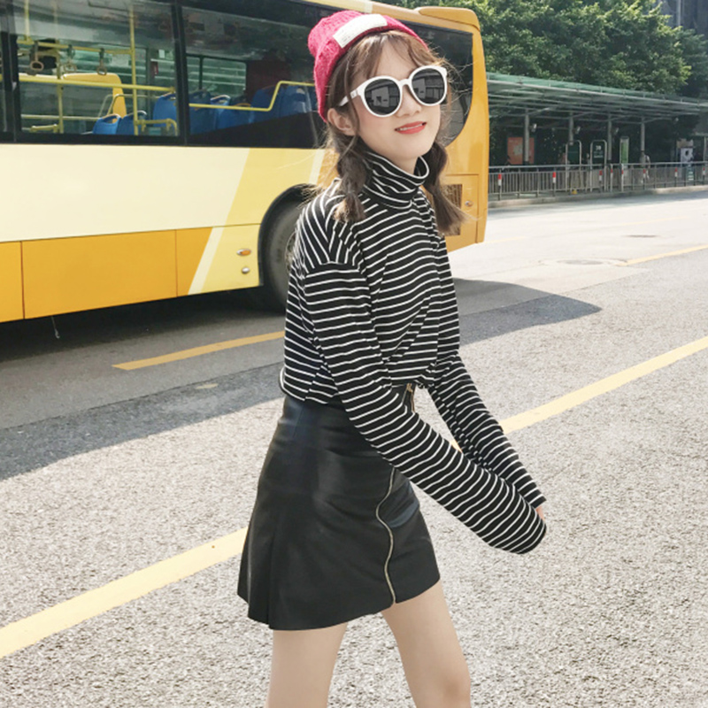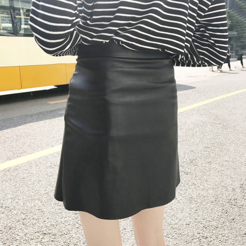 2018秋新款韓版時尚pu皮裙子拉鏈高腰A字半身裙女裝黑色包臀短裙