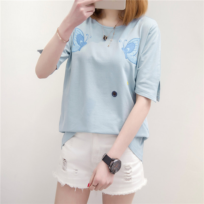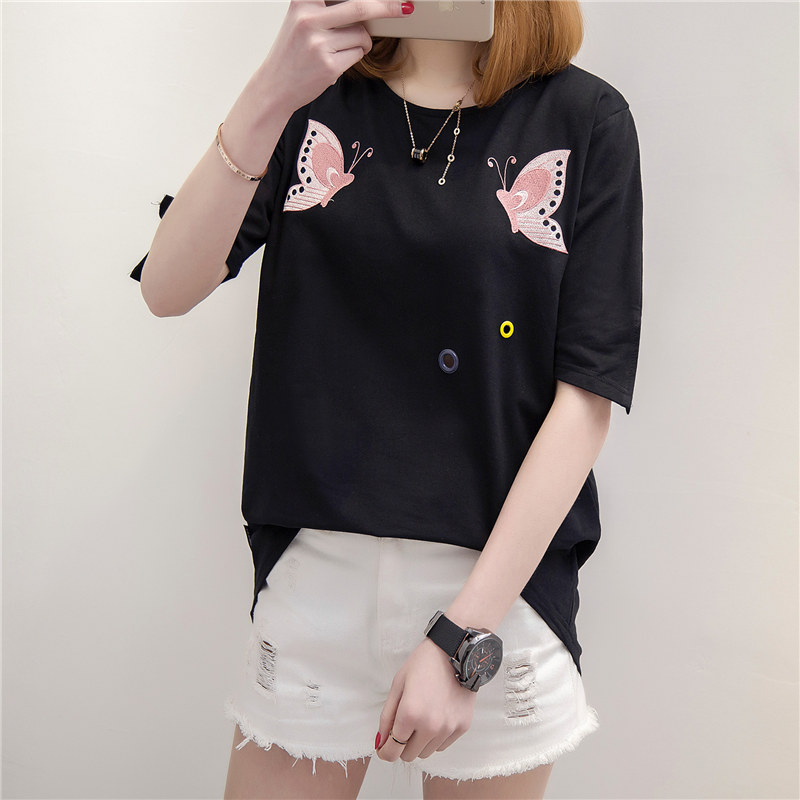 女裝春裝新款潮女上衣打底短袖白色t恤女鏤空寬松韓版體恤夏