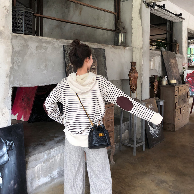 / 秋裝女2018新款軟糯連帽條紋毛衣女+慵懶風舒適闊腿褲(加厚版)