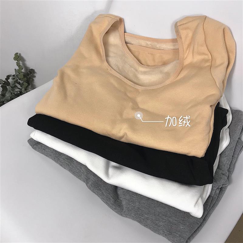 / 秋冬韓版純色加絨加厚打底衫長袖T恤學生修身顯瘦保暖內衣上衣女