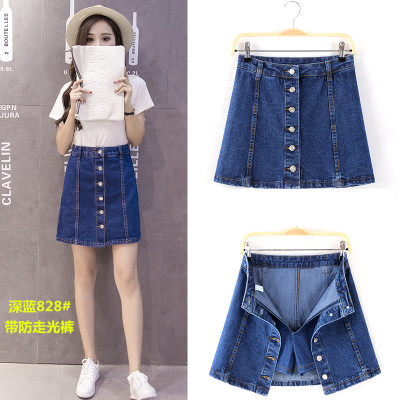 韓版高腰牛仔裙半身裙女單排扣A字裙包臀短裙防走光褲裙夏季半裙