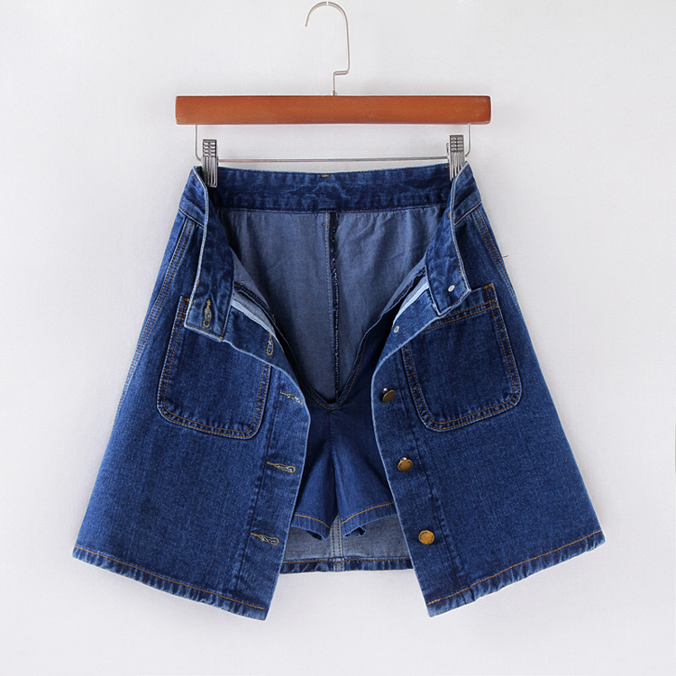 / 韓版高腰牛仔裙半身裙女單排扣A字裙包臀短裙防走光褲裙夏季半裙