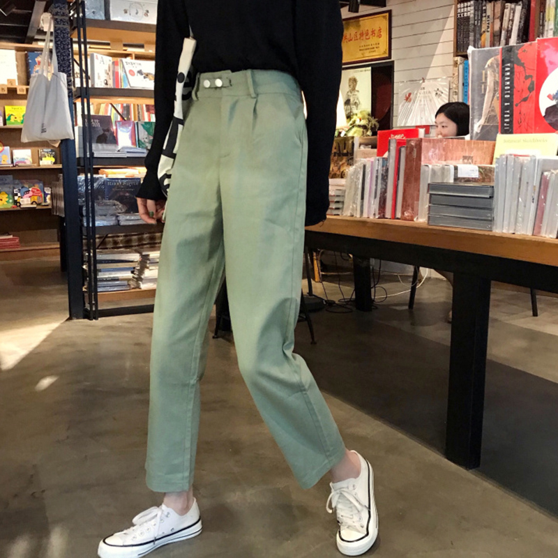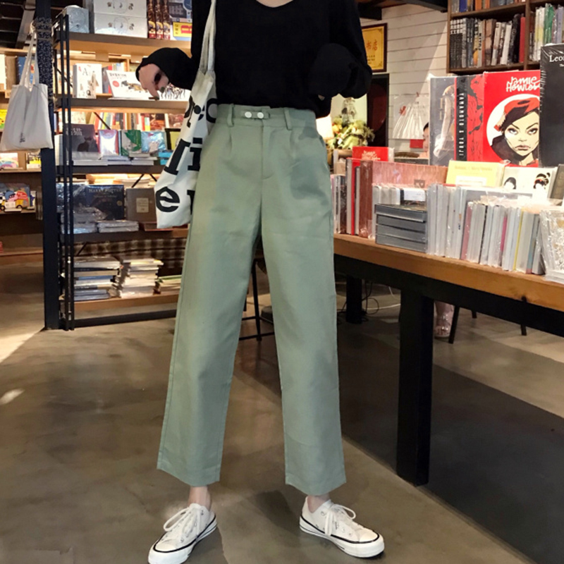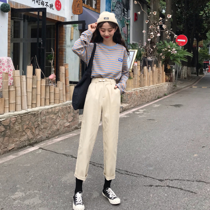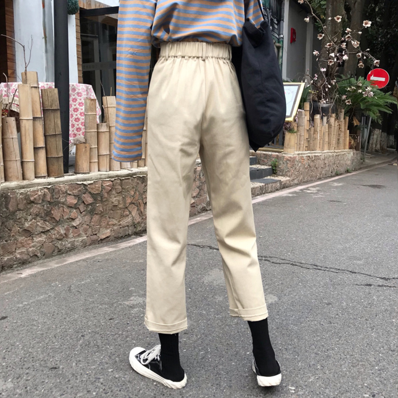 2018秋裝新款港味復古松緊高腰百搭休閑褲學生寬松顯瘦純色長褲子