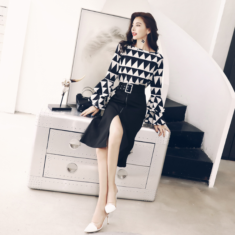 / S秀2018秋季新款名媛氣質裙子休閑兩件套長袖時尚休閑套裝裙子潮
