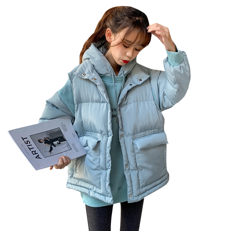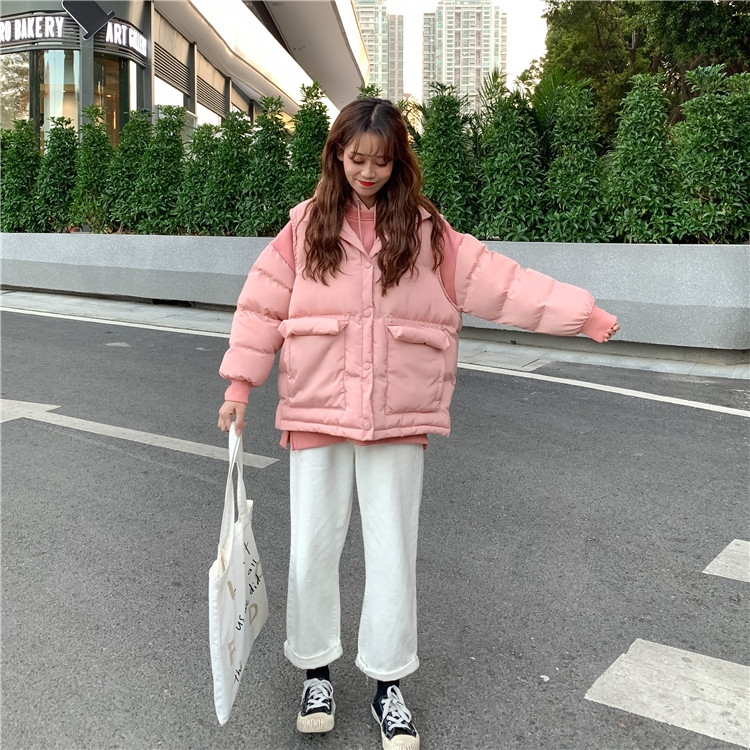 / 韓版時尚休閑套裝秋冬女裝字母拼接連帽衛衣+棉衣馬甲外套兩件套