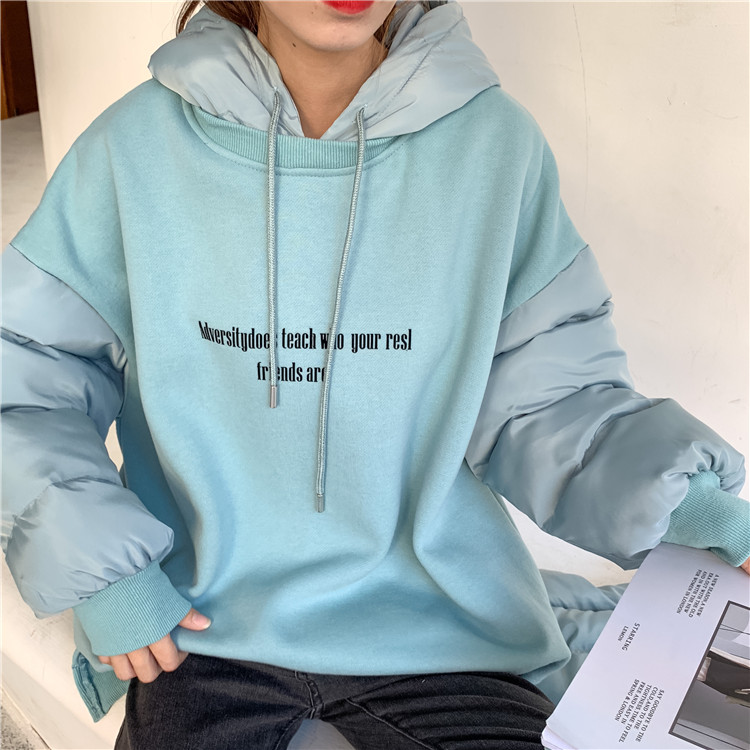 韓版時尚休閑套裝秋冬女裝字母拼接連帽衛衣+棉衣馬甲外套兩件套