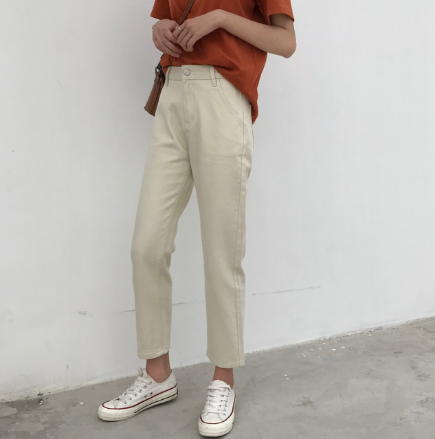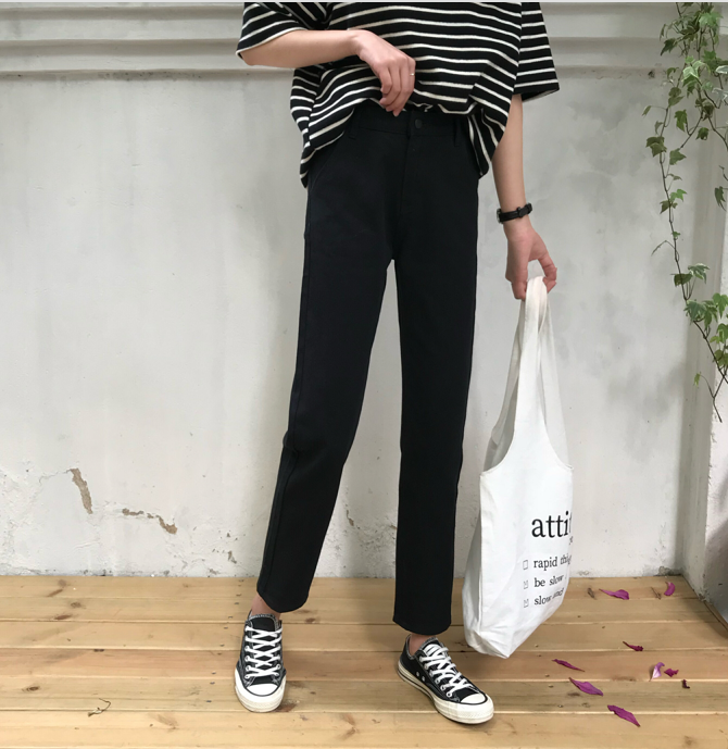/ 秋裝女裝韓版高腰寬松直筒褲九分褲顯瘦黑色牛仔褲闊腿褲長褲學生