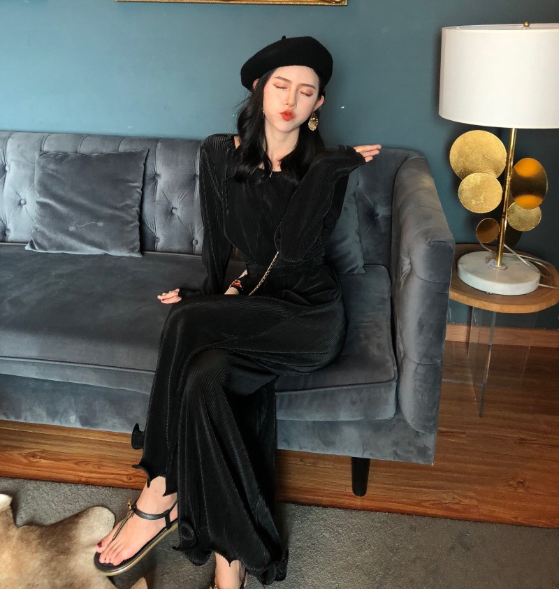/ 秋裝新款百搭長袖短款系帶上衣高腰闊腿長褲兩件套港風時尚套裝女