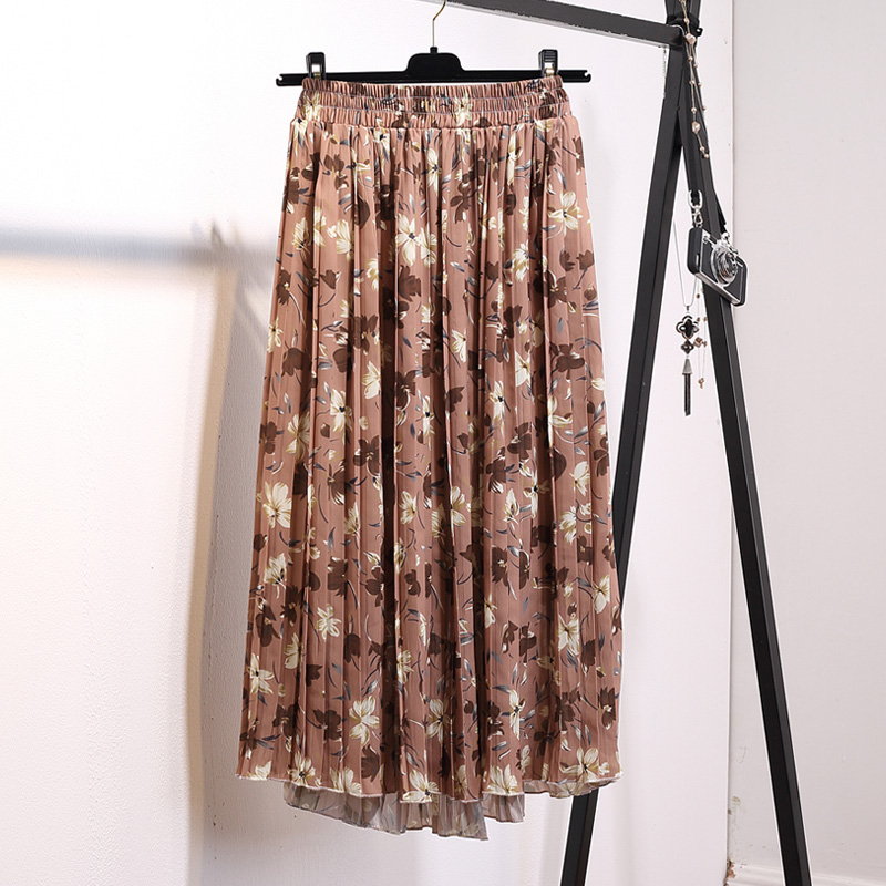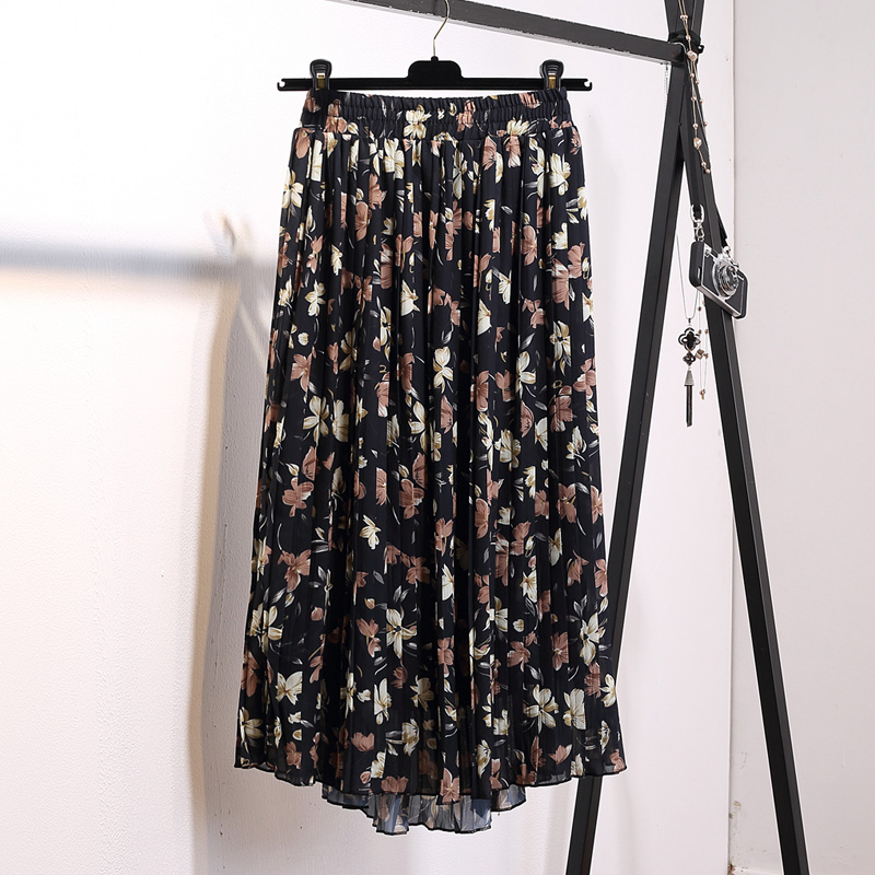 中長款碎花雪紡仙女百褶裙夏季新款女波西米亞沙灘半身長裙子