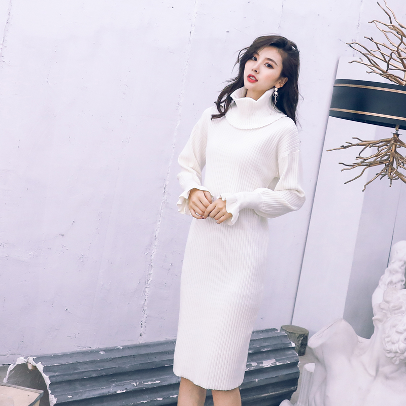 秋冬季針織連衣裙秋裝女2018新款名媛氣質打底毛衣裙子中長款冬潮
