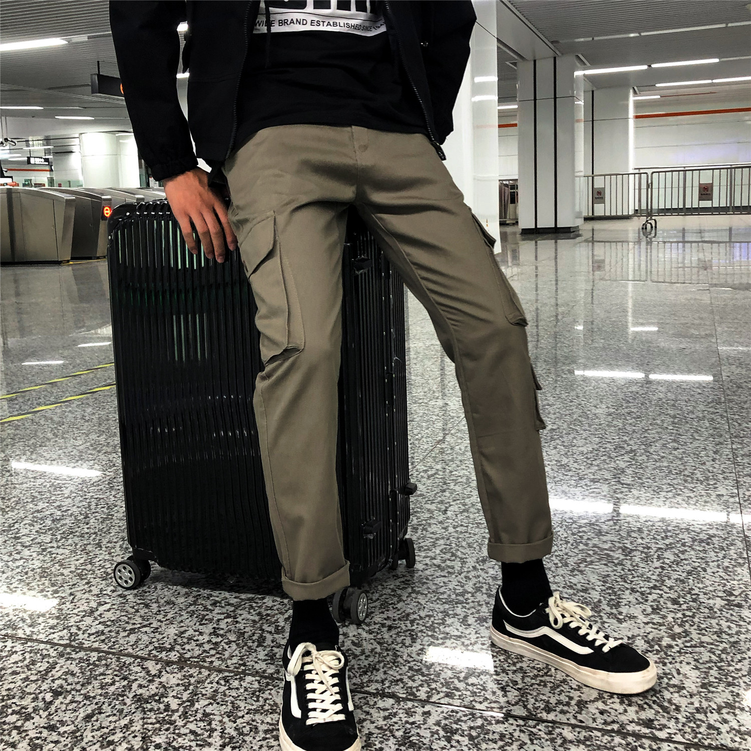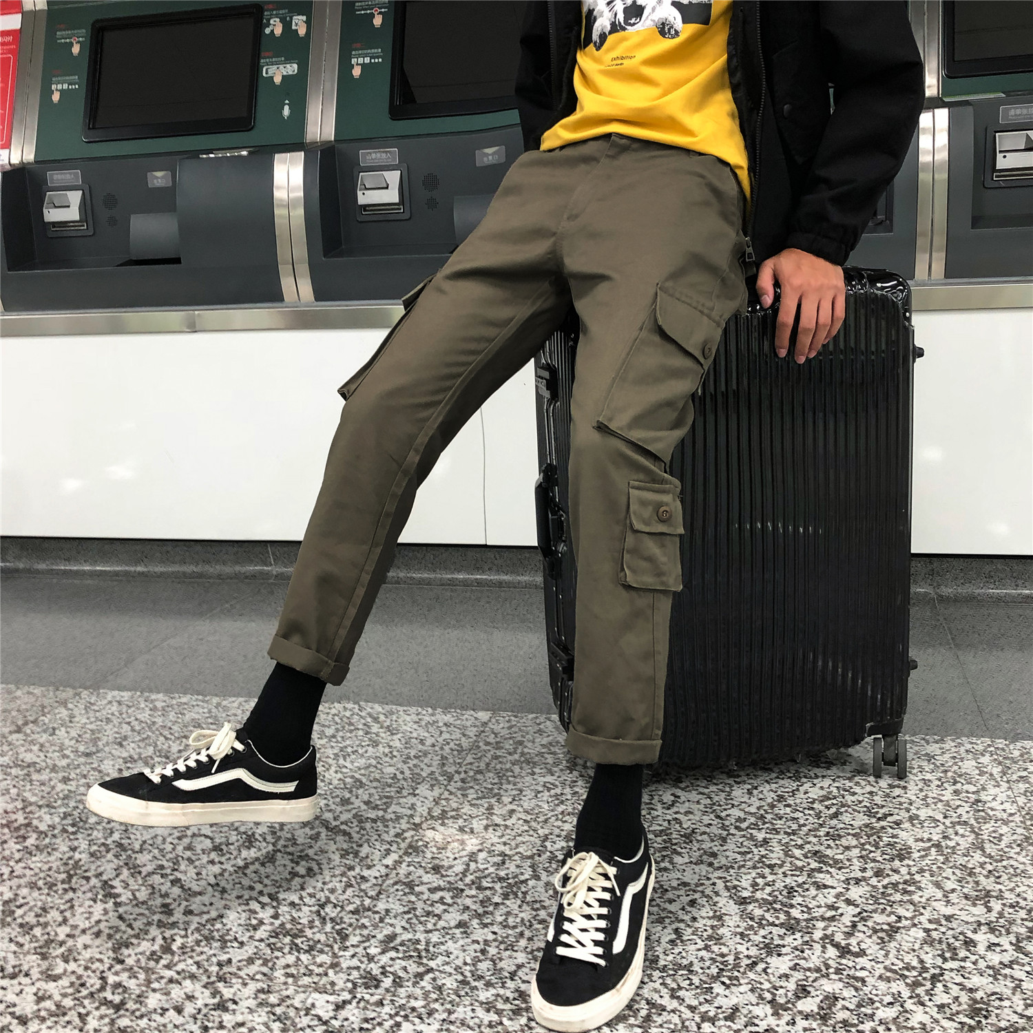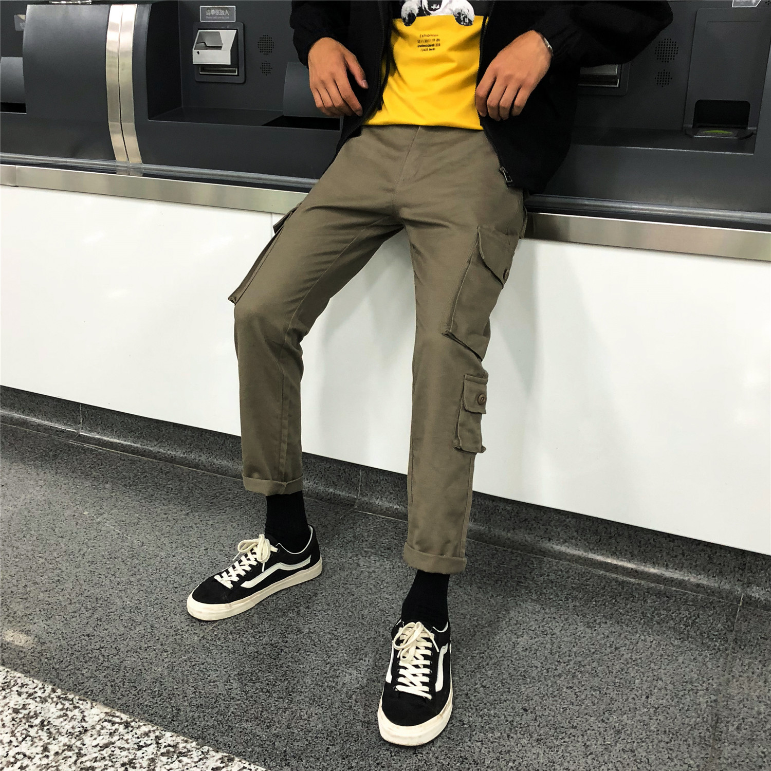 新款秋季男士工裝褲韓版潮流休閑褲潮牌百搭男褲港風寬松九分褲男