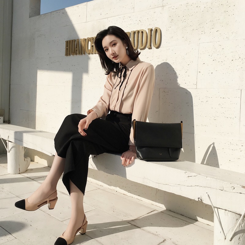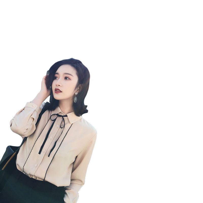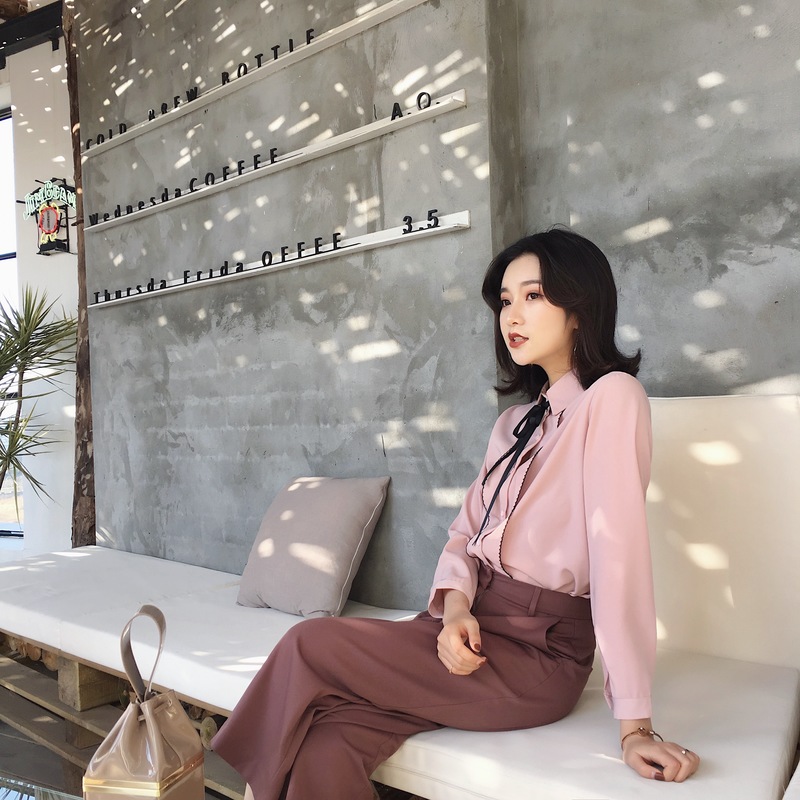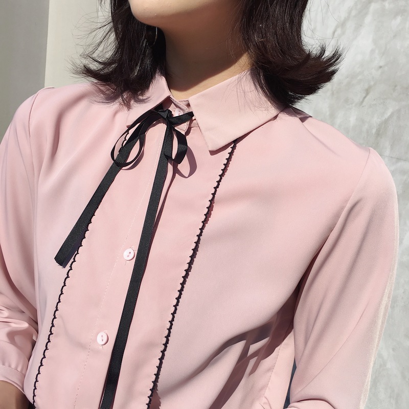 / 秋季新款時尚復古chic早秋上衣慵懶百搭蝴蝶結系帶長袖顯瘦襯衫潮