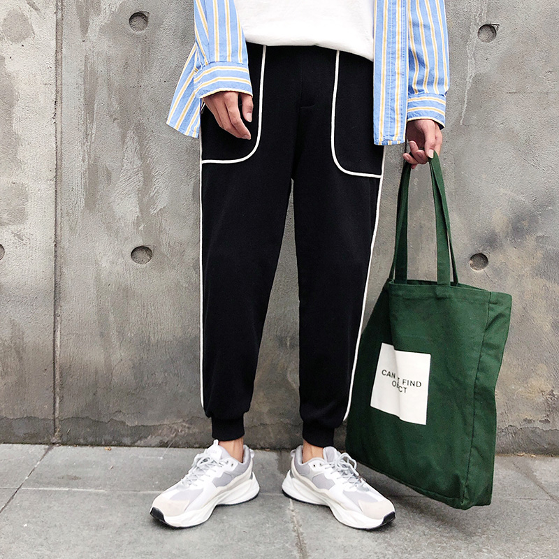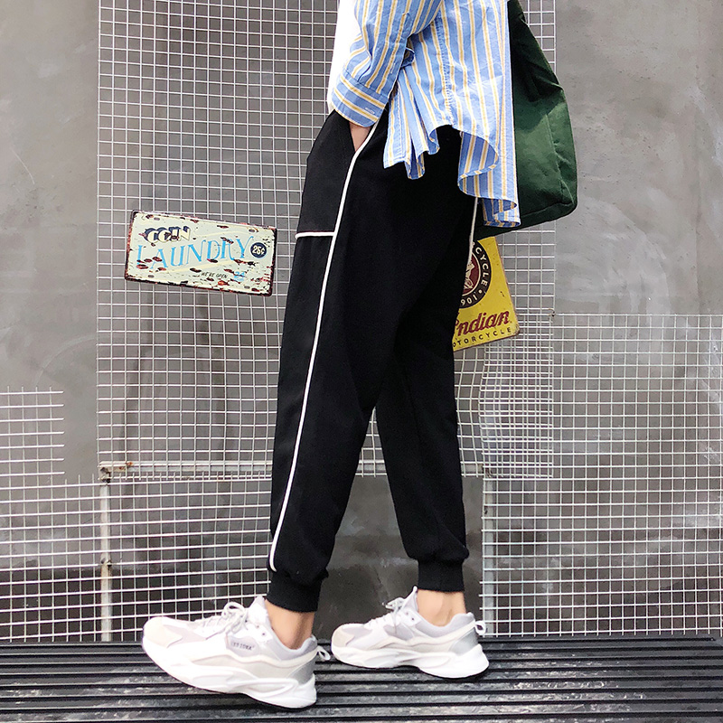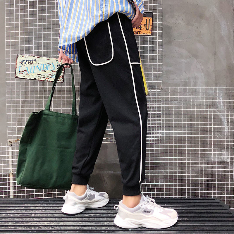 秋季港風褲子男士韓版潮流束腳褲九分褲寬松休閑褲精神小伙運動褲