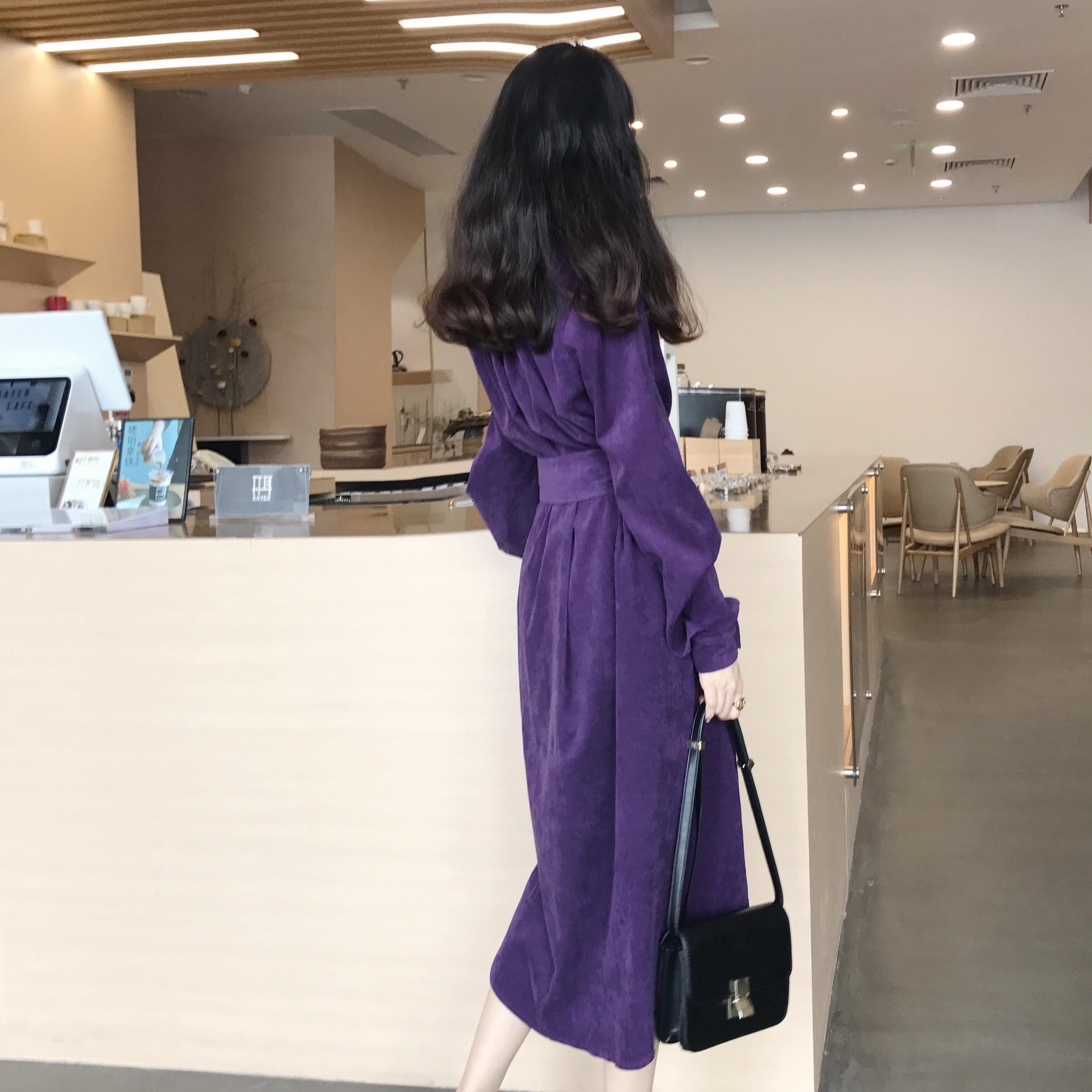 / 新款晚晚風時尚chic顯瘦V領露背氣質中長款金絲絨連衣裙女送腰帶