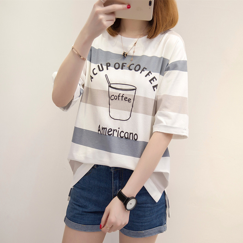 / 條紋短袖t恤女寬松韓版學生百搭bf風體恤小清新上衣夏裝新款