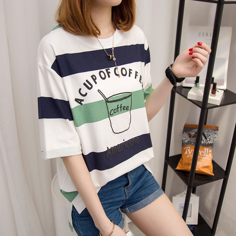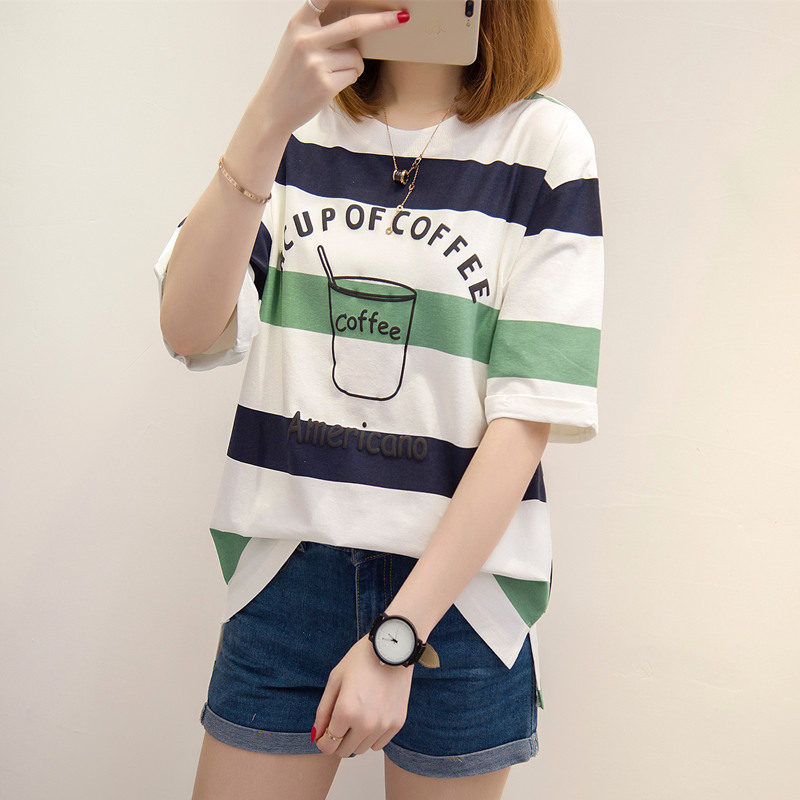 條紋短袖t恤女寬松韓版學生百搭bf風體恤小清新上衣夏裝新款