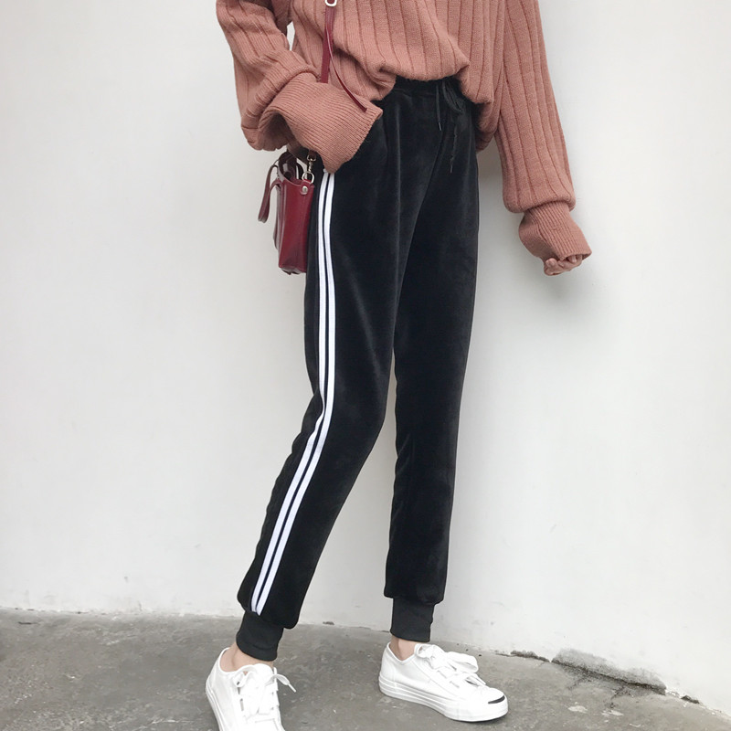2018新款秋冬韓版加厚加絨哈倫褲寬松運動褲休閑褲長褲學生褲子女