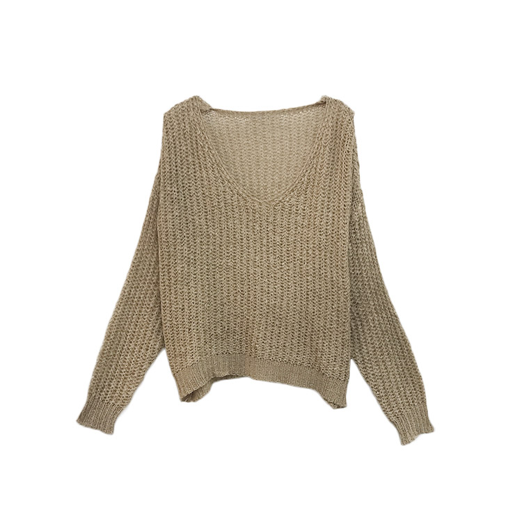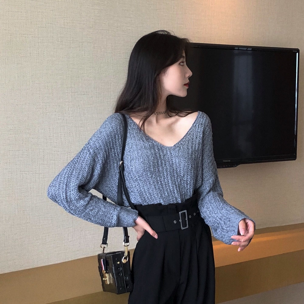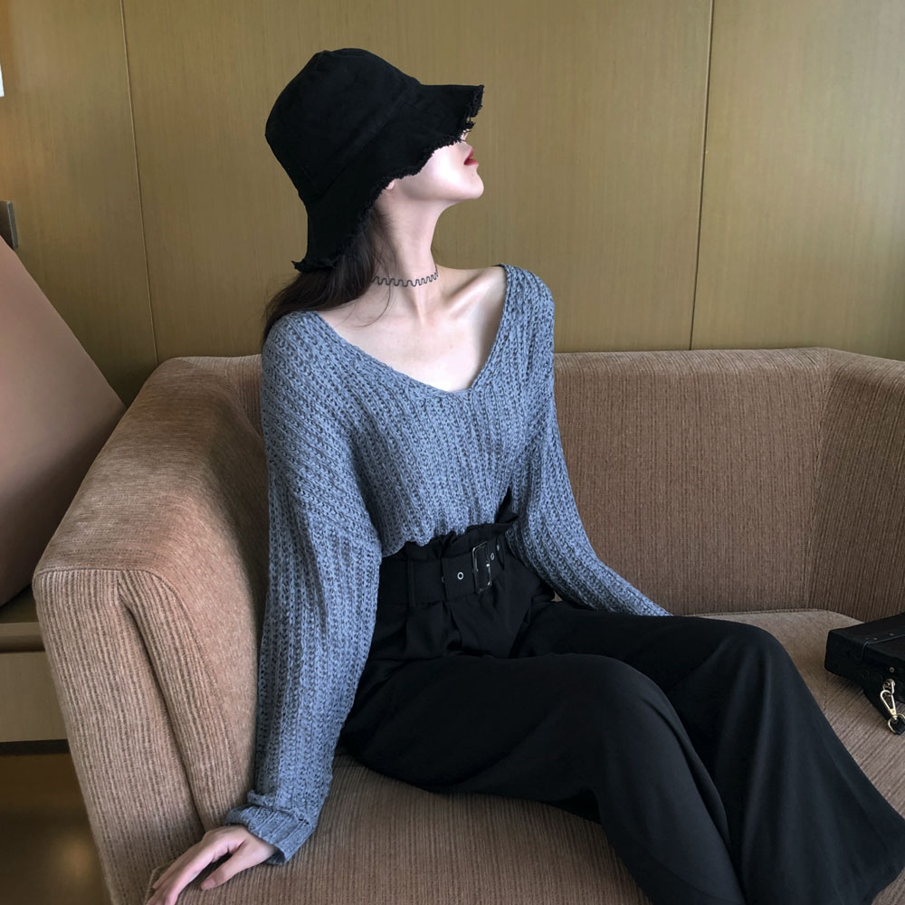 秋上新chic港風復古長袖寬松薄針織衫毛衣女大V領百搭純色上衣潮