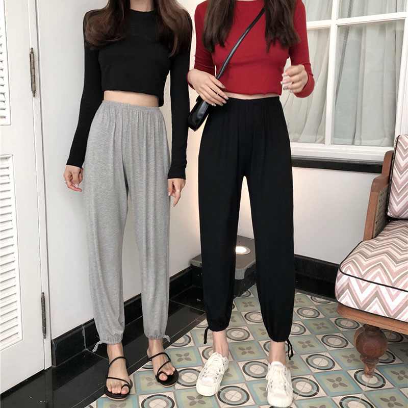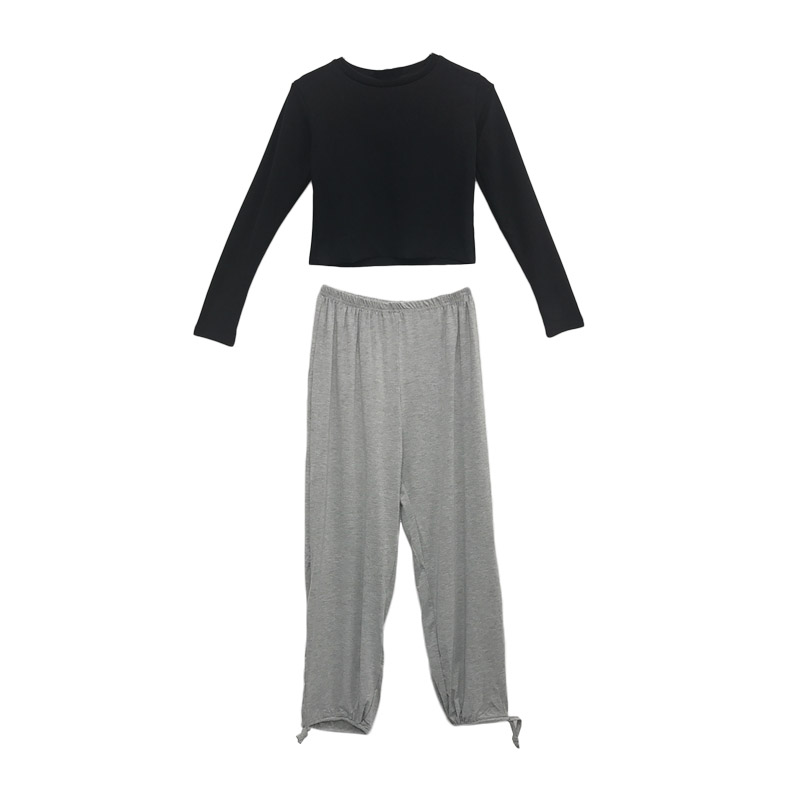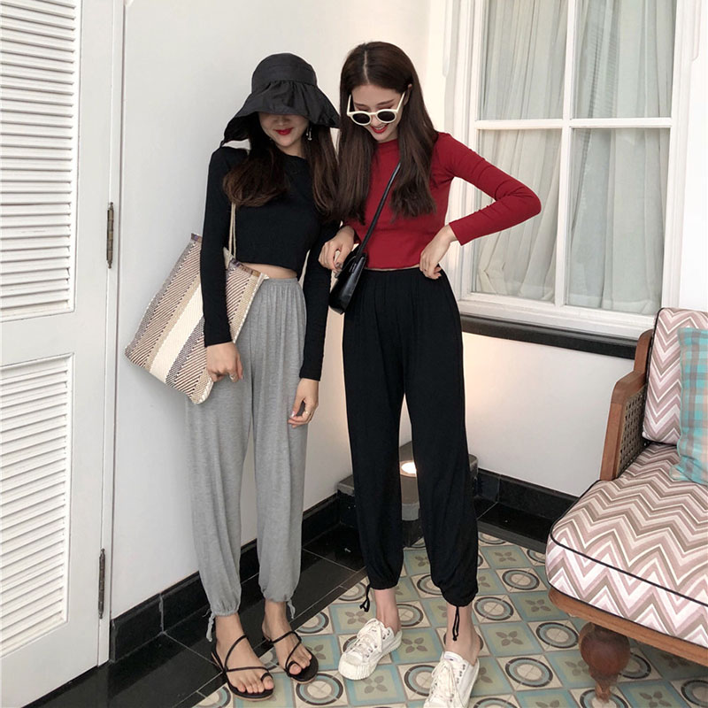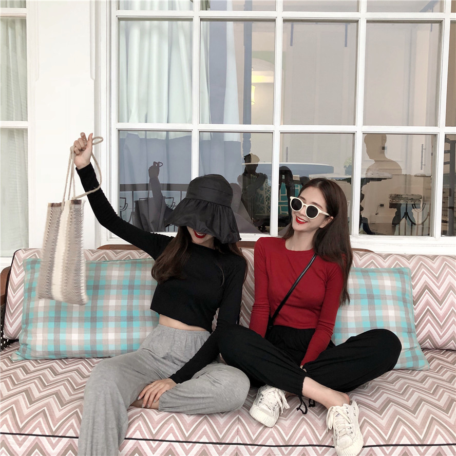 / 秋裝女2018新款磨毛短款顯瘦緊身T恤+ 束口蘿卜褲寬松顯瘦休閑褲