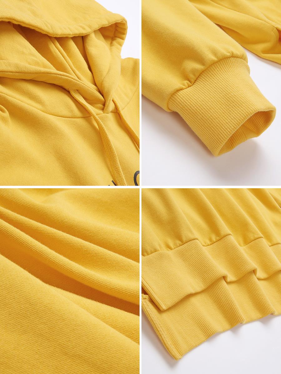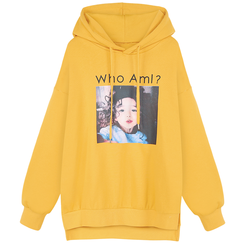 MG小象黃色連帽衛衣女秋季2018新款學生寬松長袖不規則休閑上衣潮