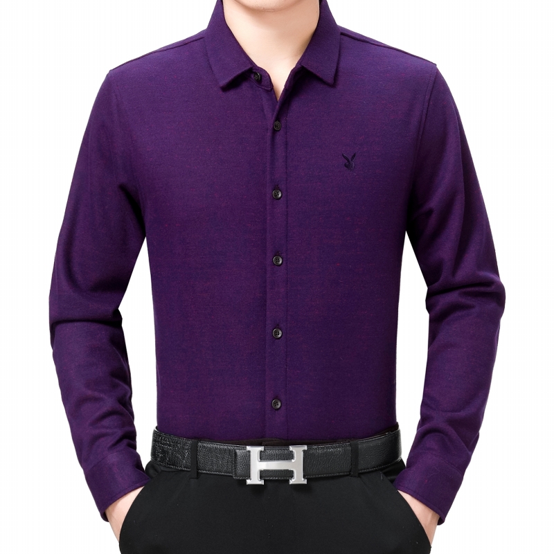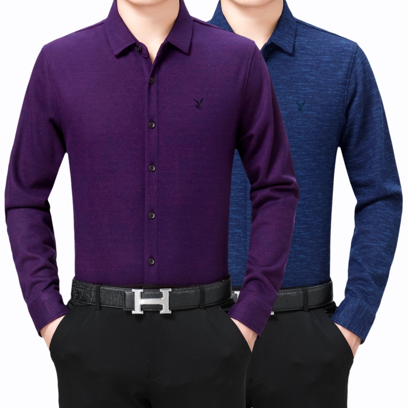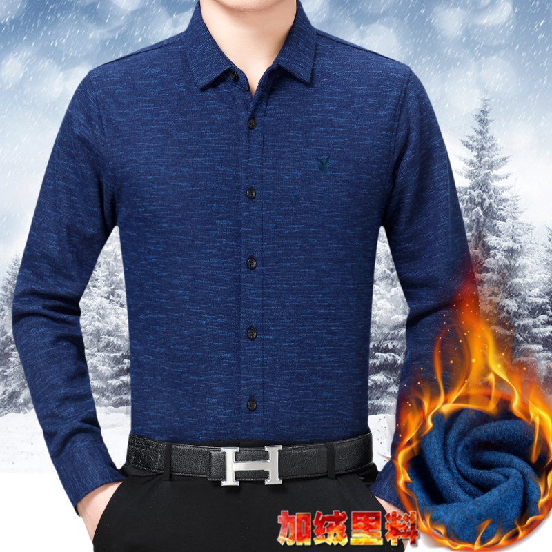 / 花花公子正品中年男士長袖羊絨保暖襯衫商務男裝加絨加厚襯衣冬2