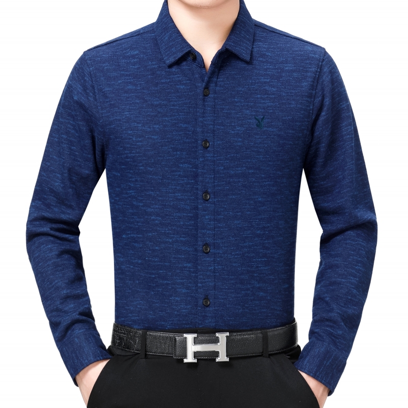 花花公子正品中年男士長袖羊絨保暖襯衫商務男裝加絨加厚襯衣冬2