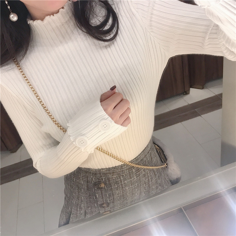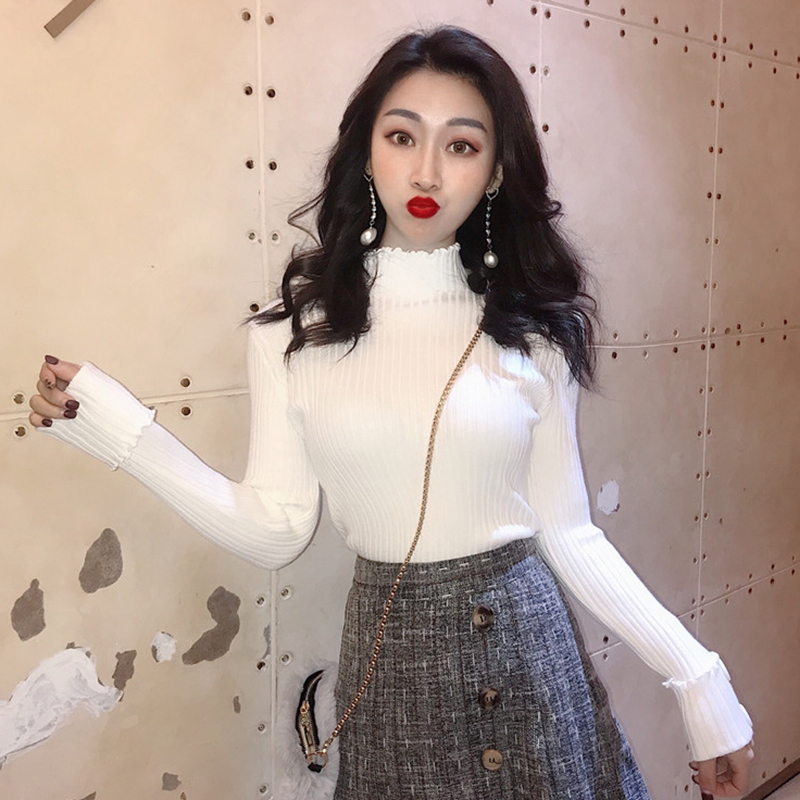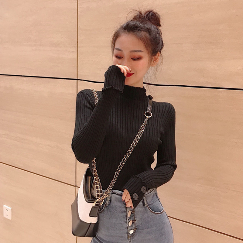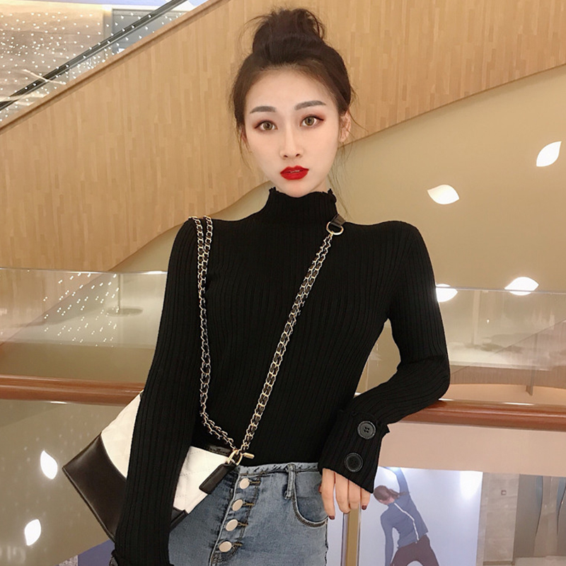 / 港味修身顯瘦打底針織衫女秋冬裝新款黑色長袖T恤學生時尚上衣潮