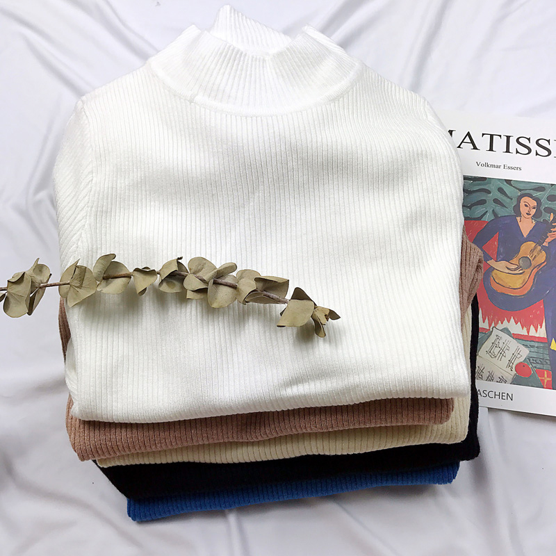 / 半高領打底針織衫秋裝女2018新款修身純色長袖上衣學生時尚薄毛衣