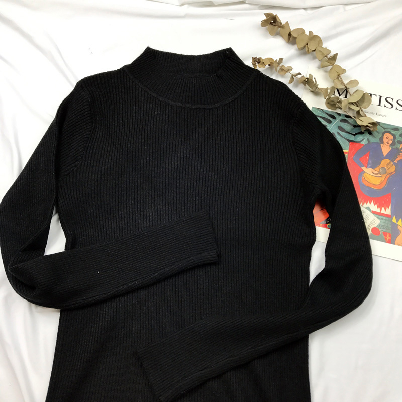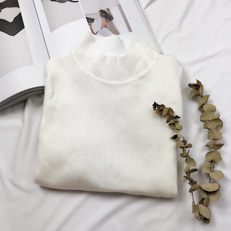 半高領打底針織衫秋裝女2018新款修身純色長袖上衣學生時尚薄毛衣