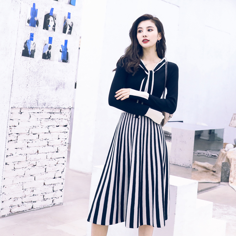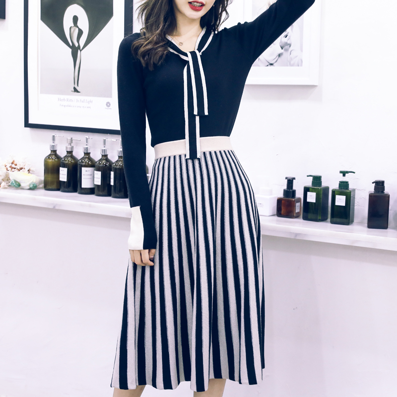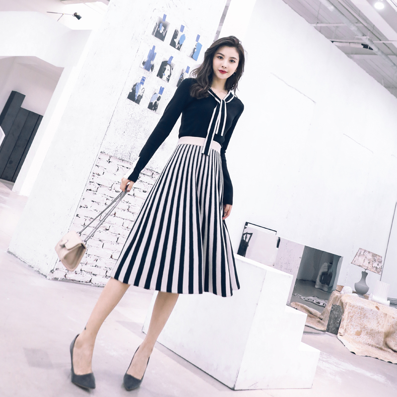 女神針織套裝裙子2018年秋裝新款韓版氣質時尚連衣裙chic兩件套女