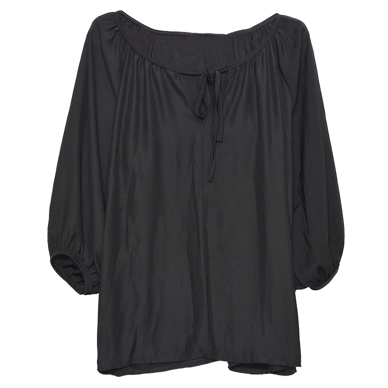 春秋chic風百搭純色燈籠長袖套頭襯衫復古寬松顯瘦娃娃衫上衣潮女