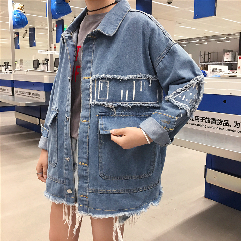 / 秋季女裝韓版時尚百搭BF風寬松磨破牛仔外套長袖休閑夾克開衫上衣