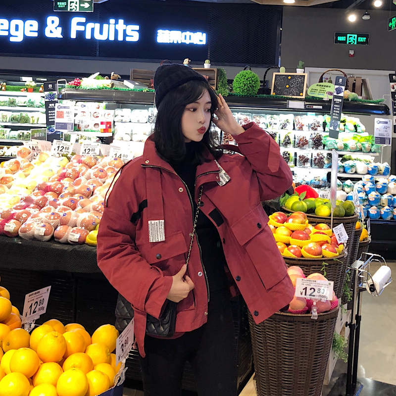 / 復古韓版chic冬季2018新款寬松百搭工裝服短款保暖加絨加厚外套女