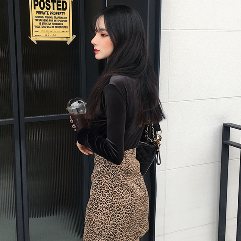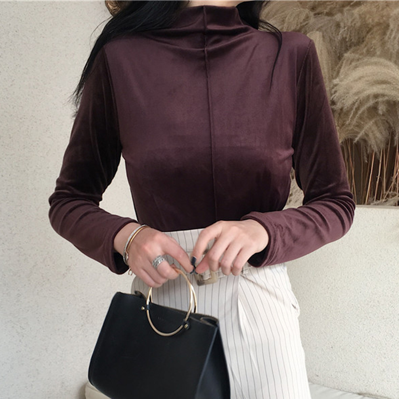 / 絲絨半高領修身顯瘦打底衫女秋冬裝新款黑色長袖上衣學生時尚T恤