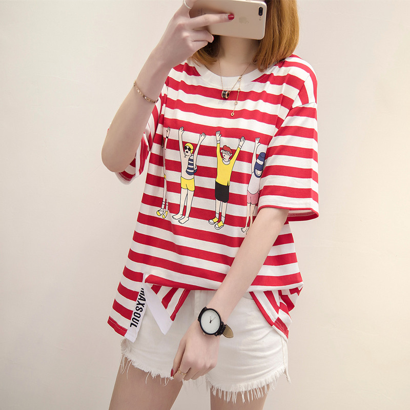 / 條紋短袖t恤女寬松韓版學生百搭bf夏裝新款衣服潮小清新上衣