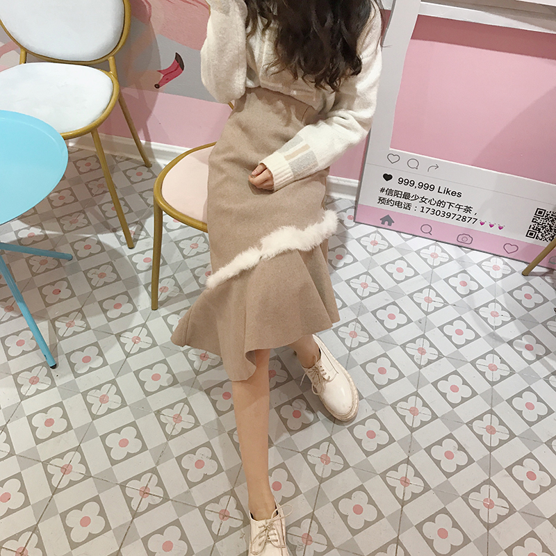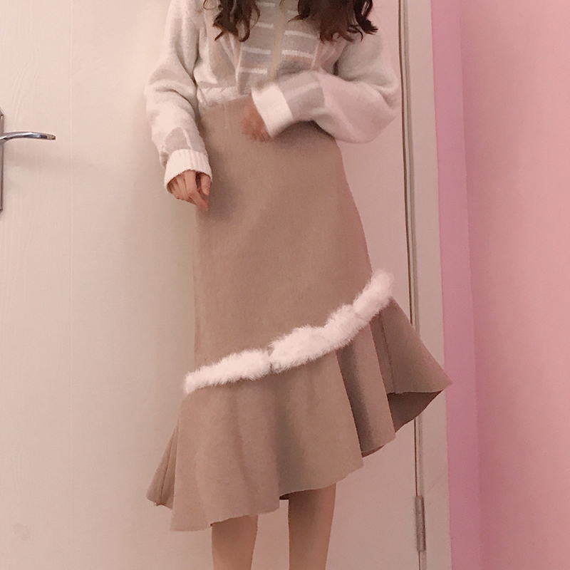/ 中長款A字魚尾裙秋冬裝女2018新款韓版高腰顯瘦呢子包臀半身裙子