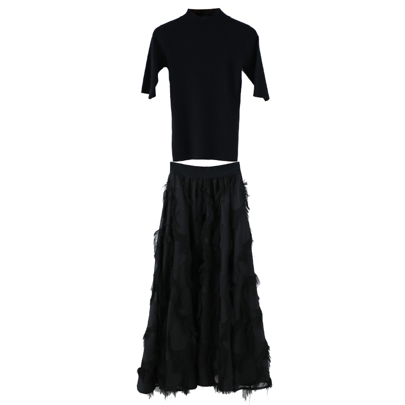 名媛氣質歐洲站2018夏季新品針織短袖上衣半身裙長裙套裝兩件套潮