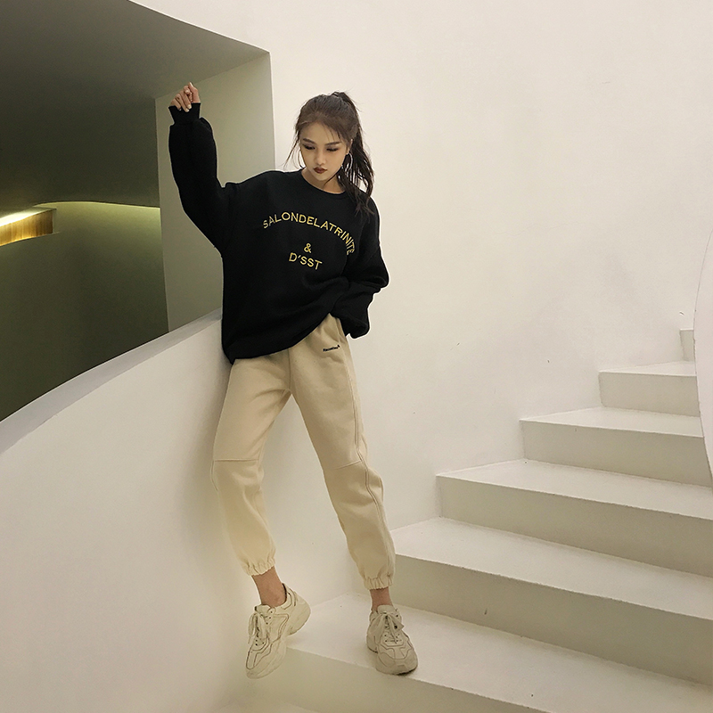 / 復古chic新款韓版百搭秋冬加厚加絨寬松長袖上衣女小清新保暖衛衣